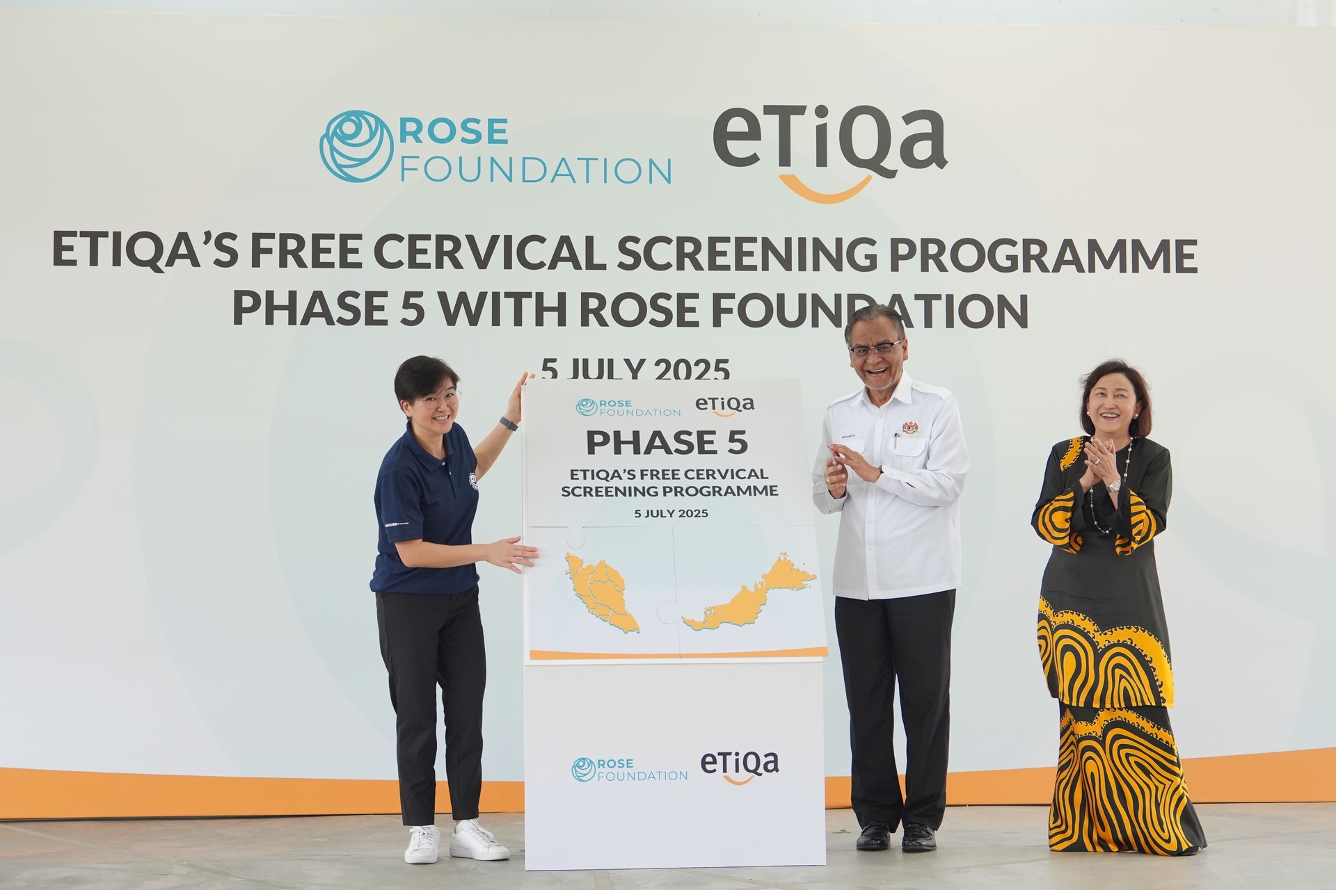 The new phase of this Etiqa’s Free Cervical Screening Programme with ROSE Foundation will enhance the existing initiative by establishing multiple ROSE hub models by providing test kits in various healthcare facilities throughout West and East Malaysia to offer free cervical screening services to the underserved communities, alongside ongoing community-based outreach under Program ROSE. This initiative aims to complement and support the national screening programme led by the Ministry of Health to improve cervical screening uptake nationwide.